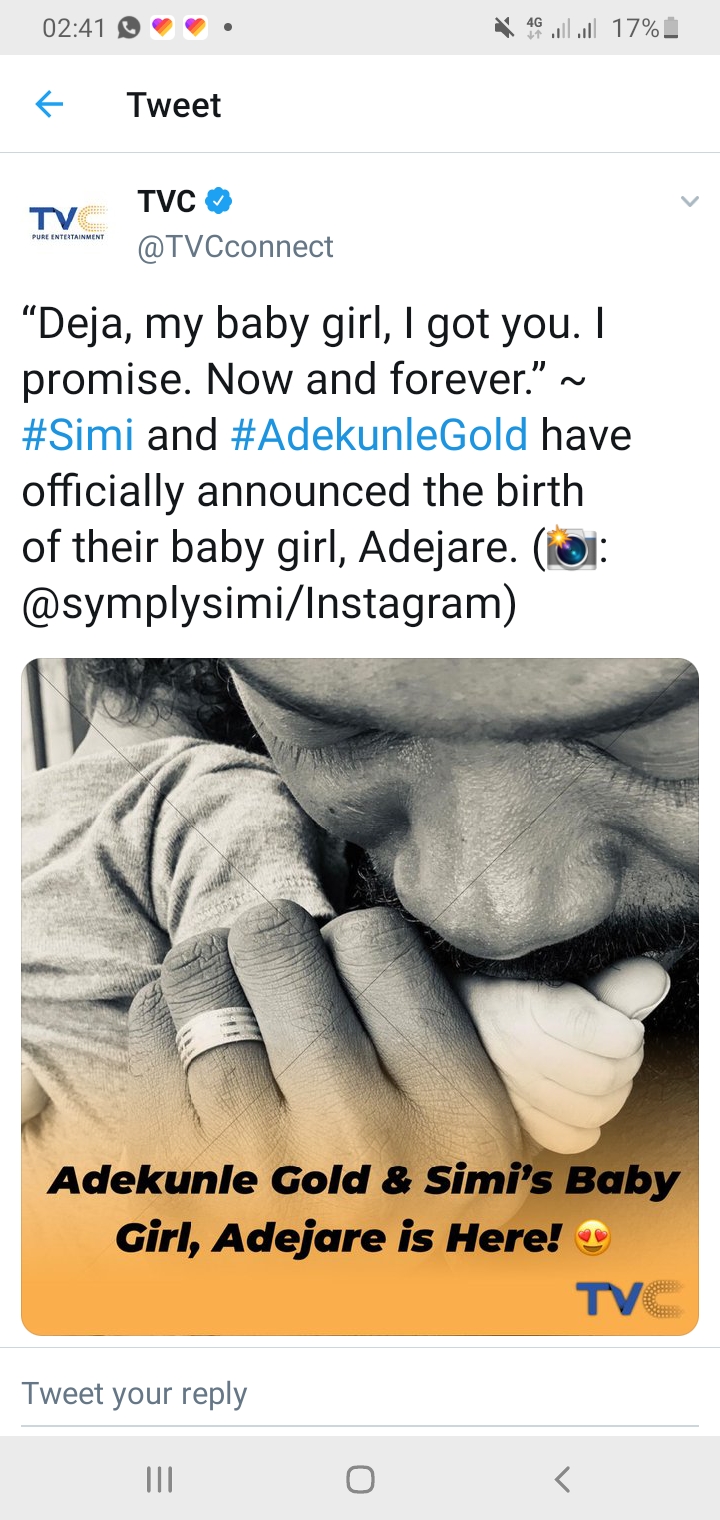The popular afro‐pop singer has delivered her first child today.He made this known through her Instagram account.